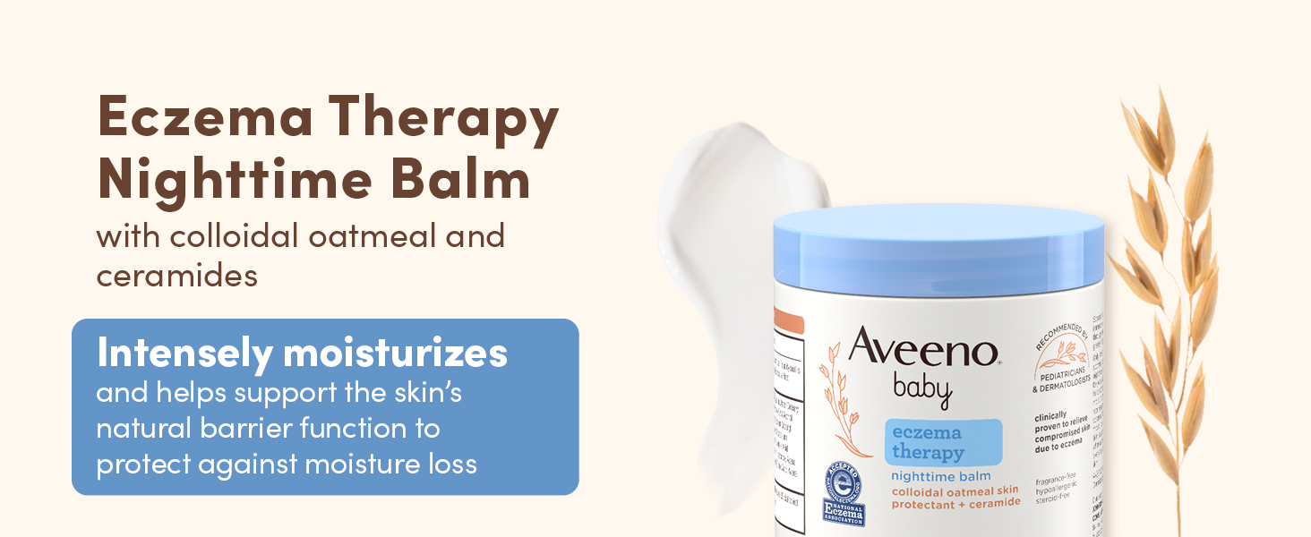 Nighttime Eczema Treatment Balm: Clinically proven Aveeno Baby Eczema Therapy Nighttime Balm soothes and relieves dry, itchy skin due to eczema. Combines Triple Oat Complex Soothing moisturizers and Ceramides to build skin barrier.