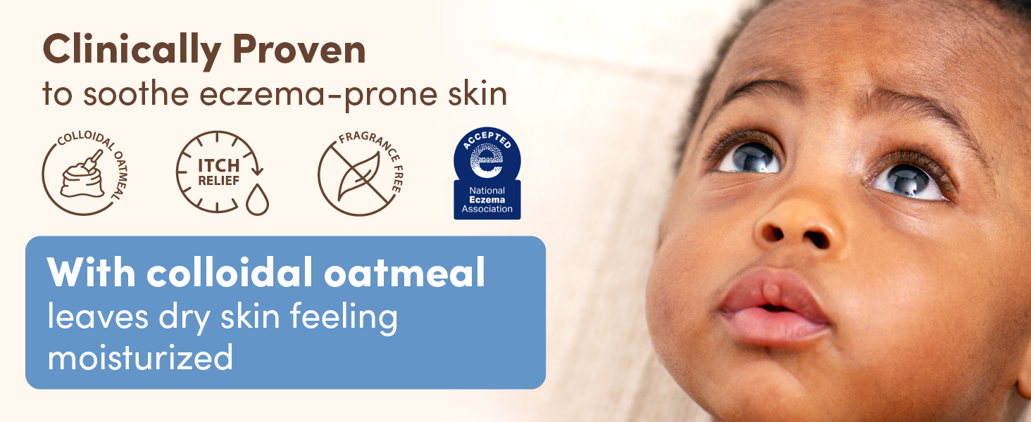 Ceramide NP works with other ingredients to moisturize baby's skin. Oat oil helps restore the skin’s natural moisture barrier. Colloidal Oatmeal temporarily protects and helps relieve minor skin irritation and itching due to eczema.